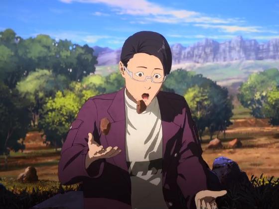 At 25:24, Joel Wyrick, voiced by Vincent Piazza, picks up 3 small stones and juggles them realistically for 6 seconds.