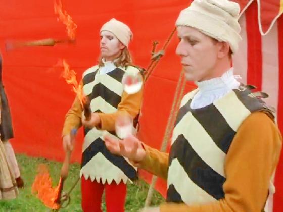At 18:30, two jugglers are seen for 14 seconds, one with 3 torches and the other with 3 crystal balls. The one with crystal balls is seen again briefly 30 seconds later.