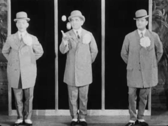 At 01:02, during the opening titles, many vaudeville era performers were shown, including someone juggling two balls in one hand.