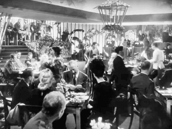 At 22:07, as people enter the Bird Cage nightclub and walk to their table,