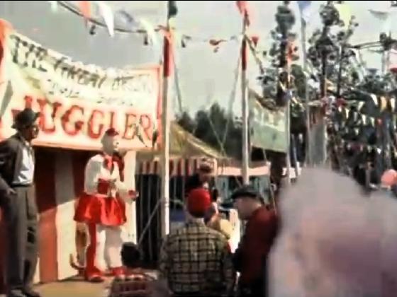 At 32:12, Harry Johnson appeared as a carnival clown, juggling 3 clubs for about 8 seconds.